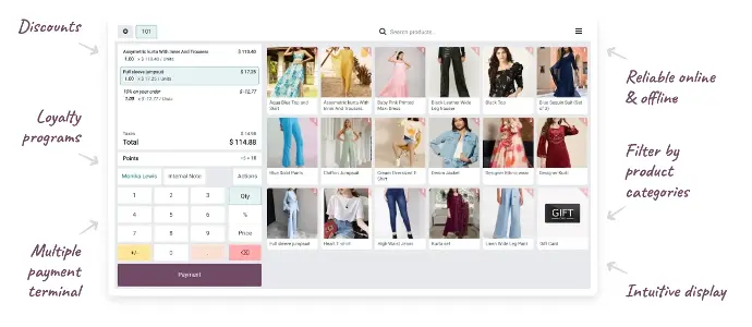 כמענה לצורכי הקמעונאות, Odoo מספקת מודול קופה רושמת (POS) לניהול יעיל של תהליכי מכירה ושירות. המערכת מאפשרת לנהל מכירה בחנות או מסעדה עם עבודה מלאה בענן ותמיכה בתקשורת Online ו-Offline.